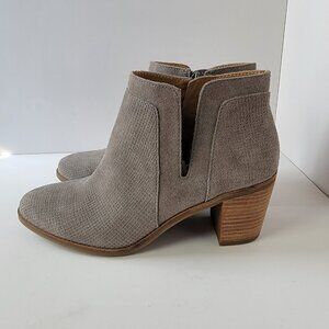 Lucky Brand Ponic Gray Suede Leather Boho Round Toe Ankle Booties, Size 10M