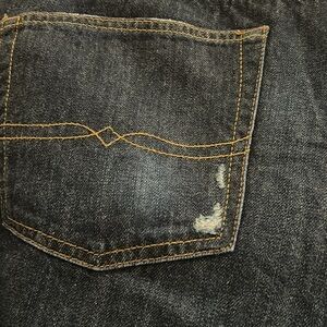 Lucky Brand Premium Denim 363 Straight Leg Deep Blue Distressed Jeans 38 x 32