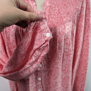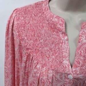 Lucky Brand Printed Button Down Pintuck Top Sz XS