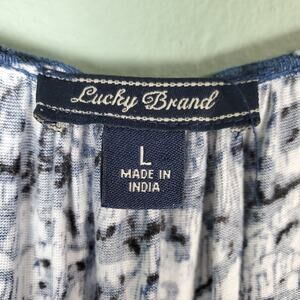 Lucky Brand Allover print Knit and Lace Blue Top Size Large
