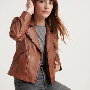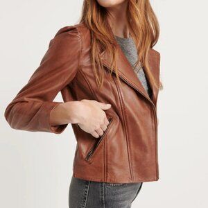 Lucky Brand Puff Sleeve Leather Moto Jacket Medium