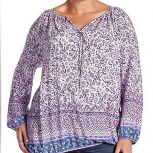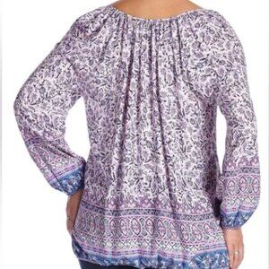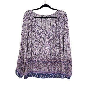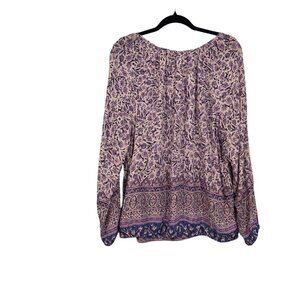 Lucky Brand Purple Boho Floral Peasant Top Size Large Lightweight Long Sleeve