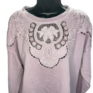 Lucky Brand Purple Distressed Boho Lace Sweater Size M
