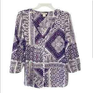 Lucky Brand Purple Tonga Bandana Blouse Size L