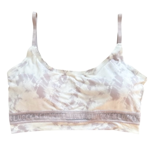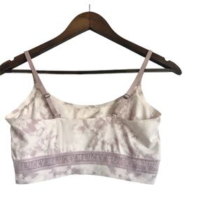 Blend of comfort and elegance with the cute purple and white tie dye Lucky Brand sports bra.