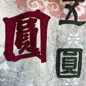 Very rare Y2K hoodie sweatshirt by Lucky Brand in size Large. Japanese inspired multicolored design with money pattern at the hem and sleeves and felt script on front and back. The hoodie is in great pre-owned condition with no flaws. Some light pilling only on the felt red script wording.