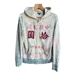 Lucky Brand RARE Y2K Asian Money Full Zip Women’s Hoodie Sweatshirt, Size Large