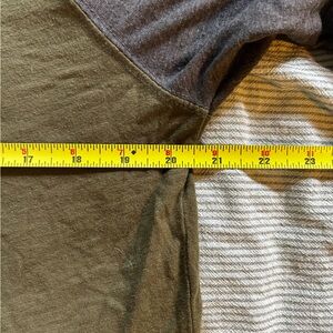 Olive green with gray 3/4-length sleeves.