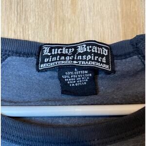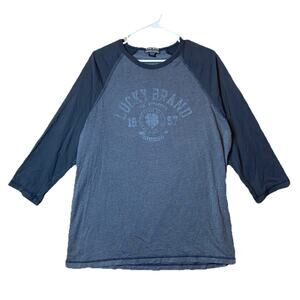 Lucky Brand Raglan Baseball Tee Shirt Men’s L Gray Black 3/4 Sleeve Graphic