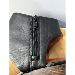 Lucky Brand Raisza Wedge Sandals Womens size 7 Leather Ankle Strap Black