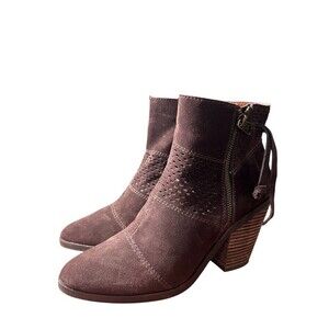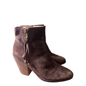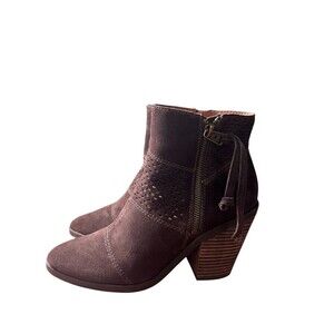 Lucky Brand Ramses Black Suede Ankle Bootie Womens Size 8.5M Zip Block Heel
