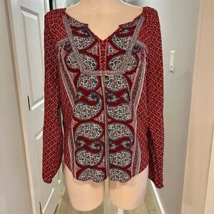 Lucky Brand Rayon Multicolor Long Sleeve Blouse