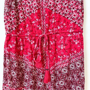 Lucky Brand Red Bandana Style Dress Pockets Small Tassel Boho Rodeo Festival
