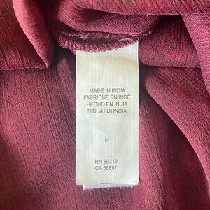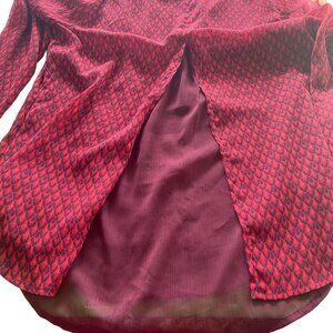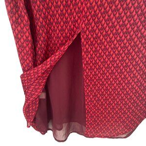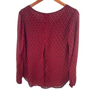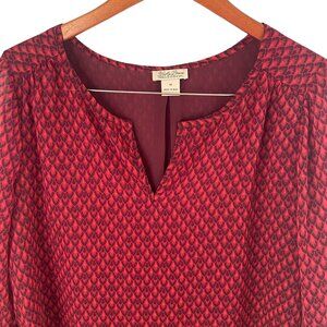 Lucky Brand Red & Black Animal Print Split Neck Blouse Sz Medium Long Sleeves
