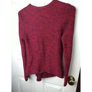Lucky brand women's long sleeve open button close red black heathered cardigan in good condition. Long casual sleeves. Front pocket button close. * Does have a few pulls shown in pics*