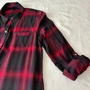 Soft, relaxed Lucky Brand plaid tunic in rich red and black.