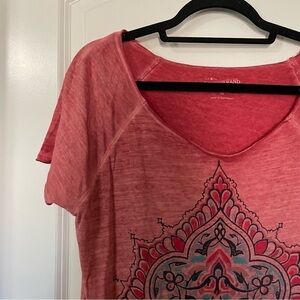 Lucky Brand Red Boho Short Sleeve Burnout Tee