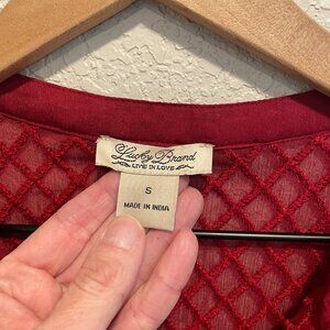 Lucky Brand Red Chiffon Peasant Top Size Small