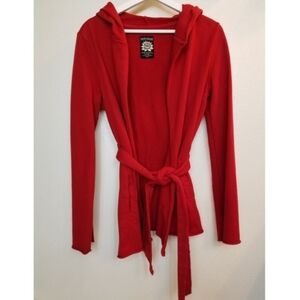 Lucky Brand Red Hooded Sweatshirt Cardigan 100% Cotton Women's Small S Tie Front