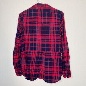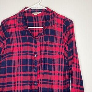 Lucky Brand Red Plaid Cuffed Collared Button Up Top Size Small