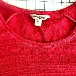 Lucky Brand Red Textured Long Sleeve Top Womens M