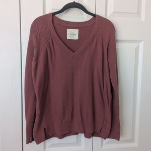 Lucky Brand women’s sweater small, red v-neck pullover sweater, fall hue cashmere blend sweater, Lucky Brand cozy knit, machine washable cashmere blend sweater