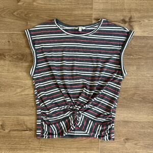 Lucky Brand Red White Blue Cap Sleeve Shirt Top Size Small