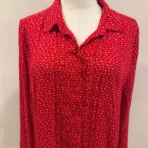 Lucky Brand Red White Dot Long Sleeve Blouse Women Large Lightweight Office Work