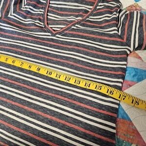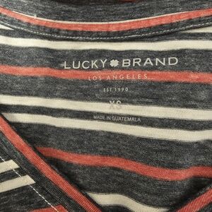 Lucky Brand Red and Navy Striped V-Neck Short Sleeve T-Shirt Women's Size XS