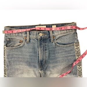 Lucky brand striped jeans. Relaxed taper fit. Ankle fraying. Distressed.
