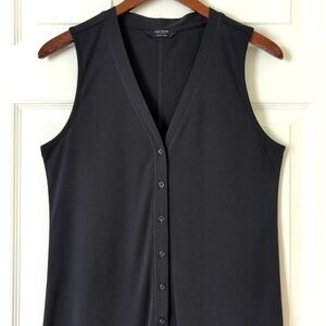 Lucky Brand Retro Ribbed Button Front V-neck Sleeveless Mini Dress Dark Gray S