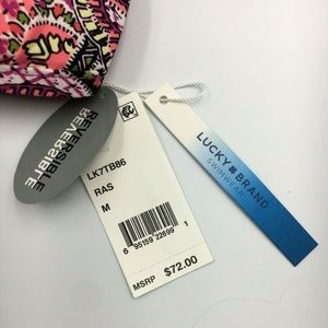 Brand New With Tags. Lucky Brand Bikini Top Tapestry Reversible Strappy Triangle Size Medium, Matching Bottom in a Size Large. Two swim suits for the price of one.