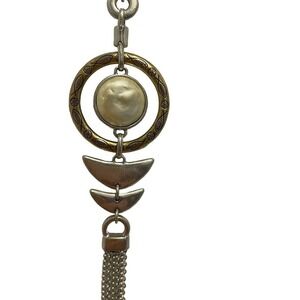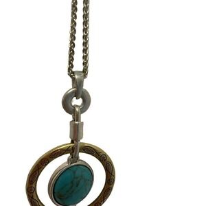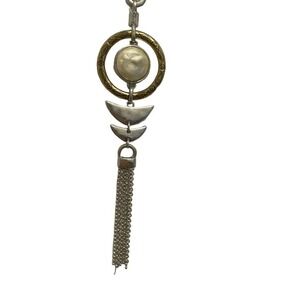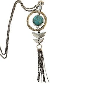 Lucky Brand Silver Tone Geo Tassel Reversible Pendant with 18" Adjustable Chain two sided . Has slide chain adjustment for short or long your choice. Tiny Fish engraved in circle surrounding the stone (hard to see in pics) ....see pictures