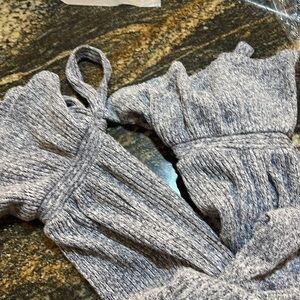 Lucky Brand Los Angeles,Ca size women M , gray small vertical ribbing ,bell cuffs with ties. Material tag missing but so very soft.