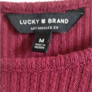 Lucky Brand Ribbed Top, long Sleeves, burgundy color, size medium, armpit to armpit across front only 20"