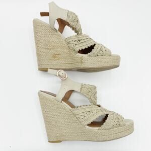Lucky Brand Ridgeview Macrame Platform Wedge Sandal Cream Tan 8