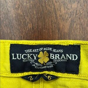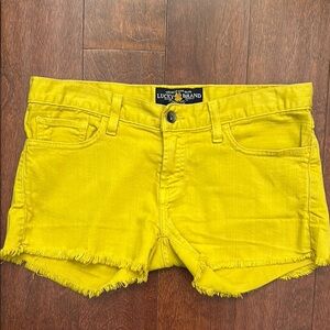 Lucky Brand Riley Shorts, Low Rise Chartreuse Goldy Yellow Denim Shorts, Size 26