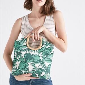 Wearable wood makes a statement with this accent handle clutch. Top Handle.