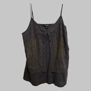 Lucky Brand Rock Grunge Festival Boho Studded Charcoal Grey Layer Tank Top M