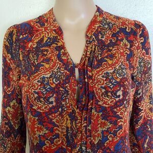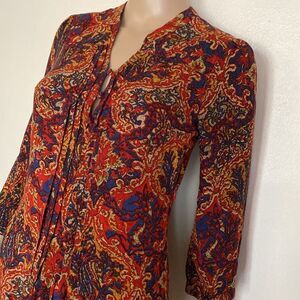 Lucky Brand Rust Orange Multicolor Paisley Print 3/4 Sleeves Tunic Mini Dress XS