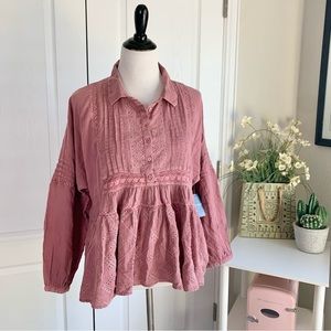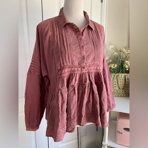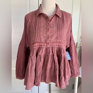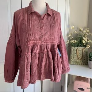 Tags: fall winter wine red pink mauve ruffle boho bohemian shirt blouse lace