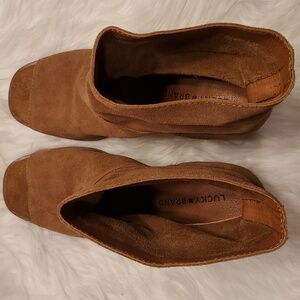Lucky Brand Ryemi Suede Slouchy Peep Toe Bootie In Tan Block Heel Size 10