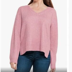 Lucky Brand S L Heather Knit Mustard Yellow V-Neck High Low Pullover Sweater