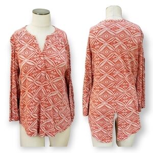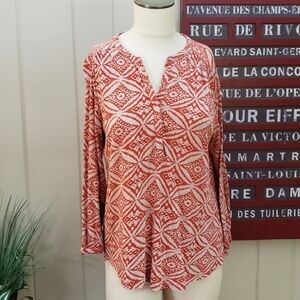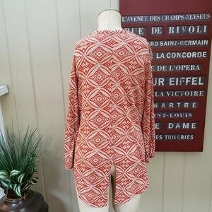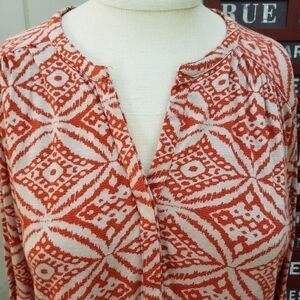 Lucky Brand | S reddish orange and white top tuxedo hem