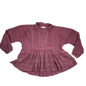Lucky Brand SMALL Rose Eyelet Lace Loose/Oversized Lightweight Prairie Blouse