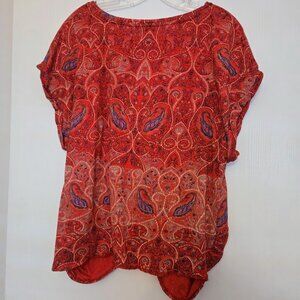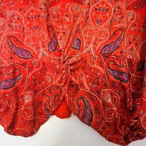 Pretty orange/red paisley short sleeve top by Lucky Brand with knotted feature in front.
