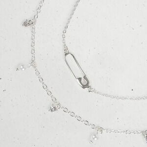 Add some sophistication to your bare legs this summer with this pair of delicate silver anklets featuring a finely sculpted safety pin centerpiece complemented with miniature charms and polished beads.