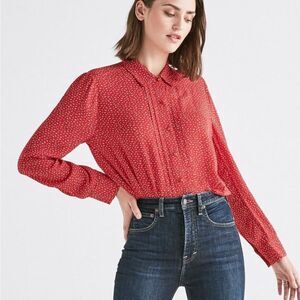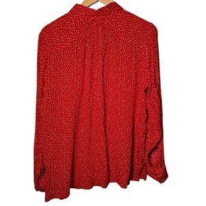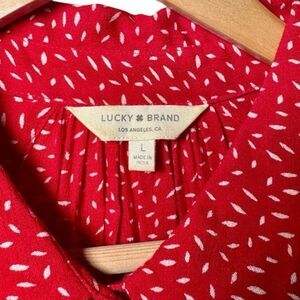 Lucky Brand Sam Button Down Shirt Long Sleeve Red White Dots Women’s Size Large