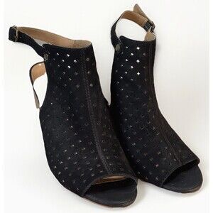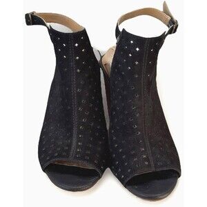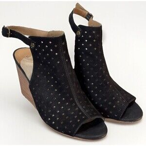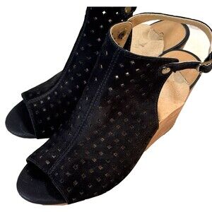 Lucky Brand Sandals 9.5M Regina Slingback 3.5" Wedge Heels Black Leather