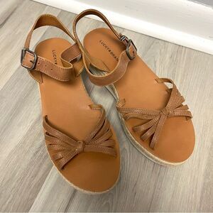 Lucky Brand Sandals Women’s 8 Juniffer Brown Leather Platform Wedge New